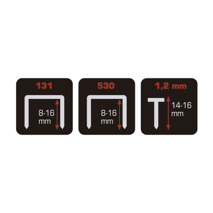 Esta potente clavadora eléctrica ofrece ergonomía y ligereza en sus tareas. 220-230V 50 Hz. Tiene una potencia nominal de 20W doble aislamiento y realiza 20 disparos por minuto. La carcasa es de plástico ABS muy resistente para protegerla de los golpes y la empuñadura es antideslizante fabricada en dos materiales. Incluye 400 grapas de 10 mm y 100 puntas con cabeza de 15 mm. Una solución de bricolaje compacta y ligera, lista para usar. Se presenta en doble blíster. Grapas necesarias: 131(8-16 mm) 530 (8-164 mm) puntas (14-16 mm)