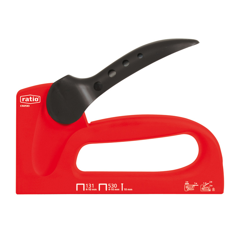 El armazón es de plástico altamente resistente y dispone de un sistema de bloqueo que te permite bloquear el cabezal desde el mango. Es ergonómica, de fácil manejo, ofrece una utilización confortable. Sobresale por su innovador y ergonómico diseño. Es multifuncional, la puedes utilizar con excelente comodidad y seguridad para realizar labores manuales precisas. Incluye 300 grapas 530 (6 y 8 mm). Viene presentada en blíster.
