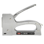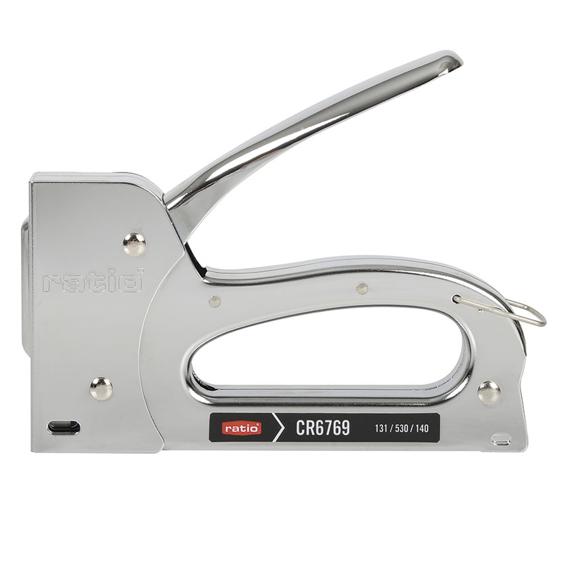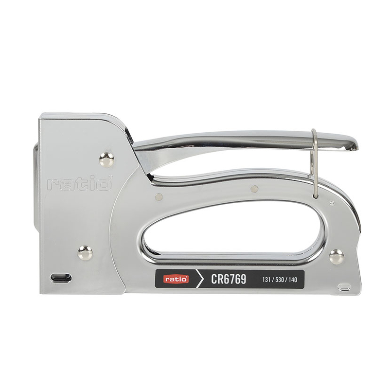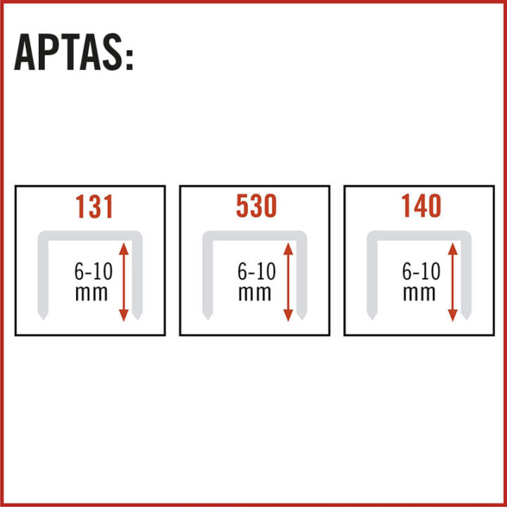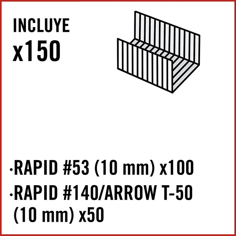 Esta clavadora brinda al usuario la plena comodidad necesaria para trabajar en trabajos manuales o industriales. El armazón es de acero con acabado cromado muy resistente apta para realizar un trabajo eficiente y seguro. Dispone de una ventana con visor de grapas y bloqueo del mago para una mayor seguridad. Además, carga inferior para facilitar la carga de grapas. Incluye 150 grapas: Grapas 530 (6-10 mm). Grapas 131 (6-10 mm). Grapas 140 (10-10 mm). Viene presentada en un doble blíster.
