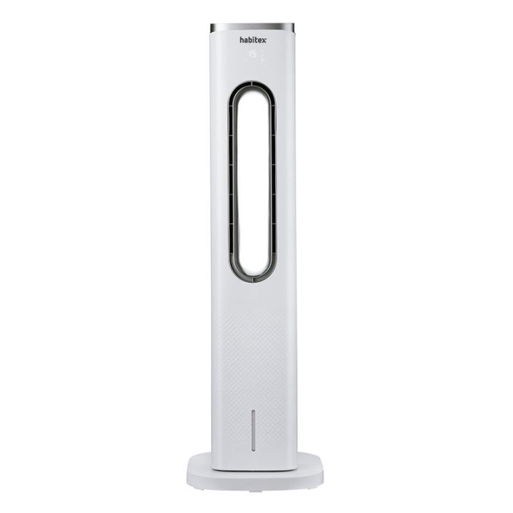 El climatizador HABITEX dispone de un consumo eléctrico reducido de 65W. Tiene unas dimensiones de 26×25,5xh.109 cm y un caudal de aire de 4,70 m3/min. Cuenta con temporizador de 12h y un depósito de 4 litros. Además dispone de oscilación, 3 velocidades y 3 modos: normal, brisa y noche. Podrás manejar el climatizador desde cualquier lugar gracias a su mando a distancia (1 pila CR2032 incluida). Tiene una garantía de 3 años y se presenta en caja.