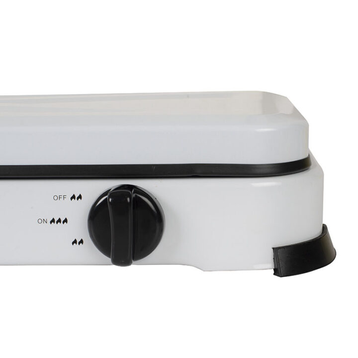 Es compacta ligera y potente. Dispone de 2 fogones y rejilla esmaltada. La carcasa exterior está esmaltada en color blanco. El sistema de encendido es manual e incorpora una tapa extraíble. No incluye regulador para la bombona y funciona con una de gas tipo camping o doméstica.