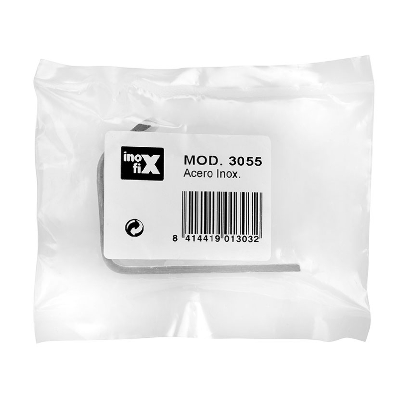Colgador INOFIX fabricado en acero inoxidable que soporta un peso máximo de 5 kg. Viene presentado en una bolsa.
