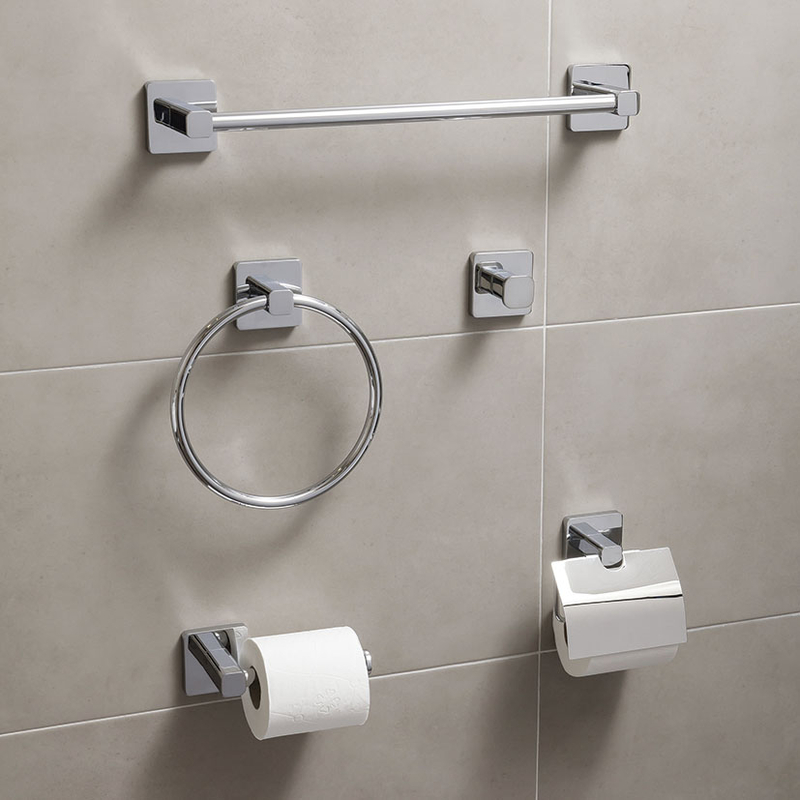 Está fabricado en Zamak, material de alta resistencia, con recubrimiento cromado brillante. Incorpora un adhesivo de alto poder de fijación 3M que permite sujetar el accesorio directamente sobre las baldosas del baño sin perforarlas o surpeficies lisas no porosas. 10 años de garantía