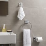 Colgador de diseño elegante para combinar con los diferentes accesorios de baño de esta misma serie.