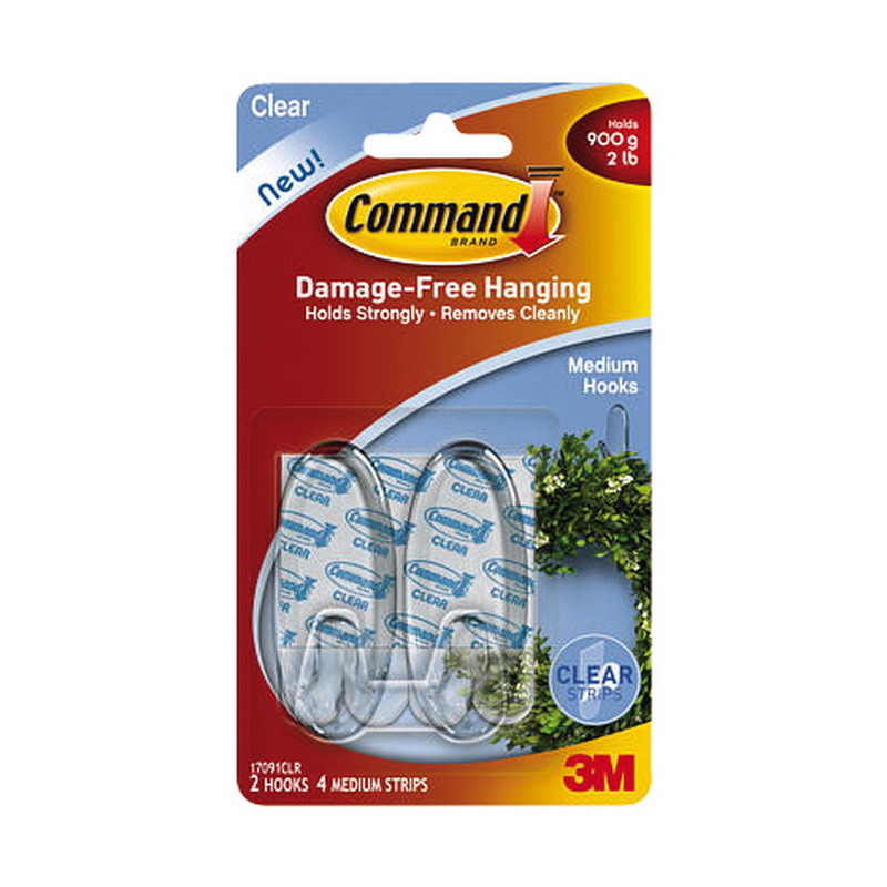 Este tipo de colgador adhesivo es de la serie Command de 3M. Son cintas resistentes al agua y no se necesita hacer agujeros. Se adhieren a multitud de superficies: paredes pintadas, madera, baldosa, etc. Se retiran limpiamente, sin marcas, sin manchas y sin residuos pegajosos. Se pueden reutilzar los ganchos usando tiras de repuesto de la misma serie. Se presentan en blíster, la cantidad cada uno puede variar en función de las dimensiones.