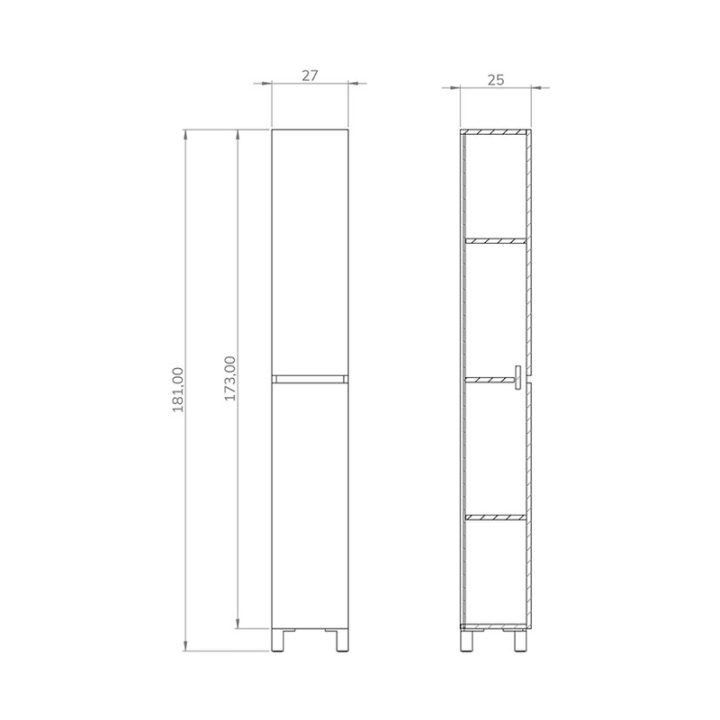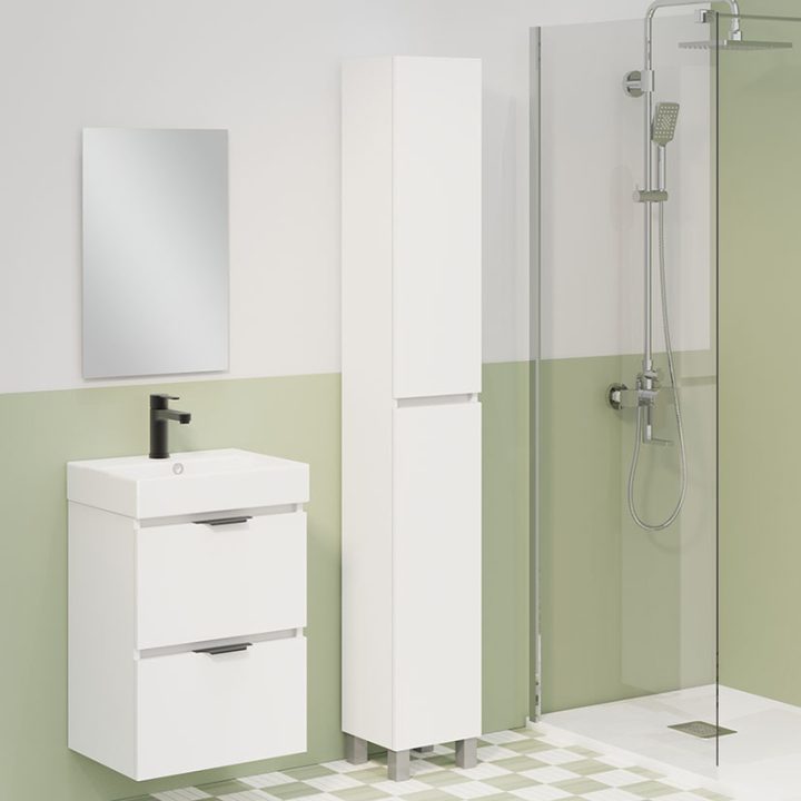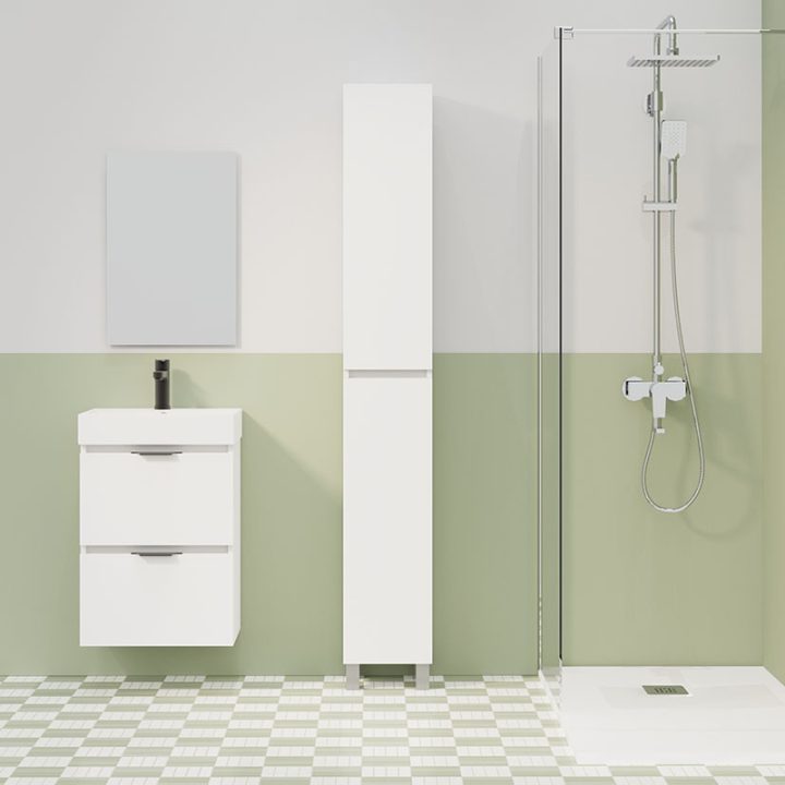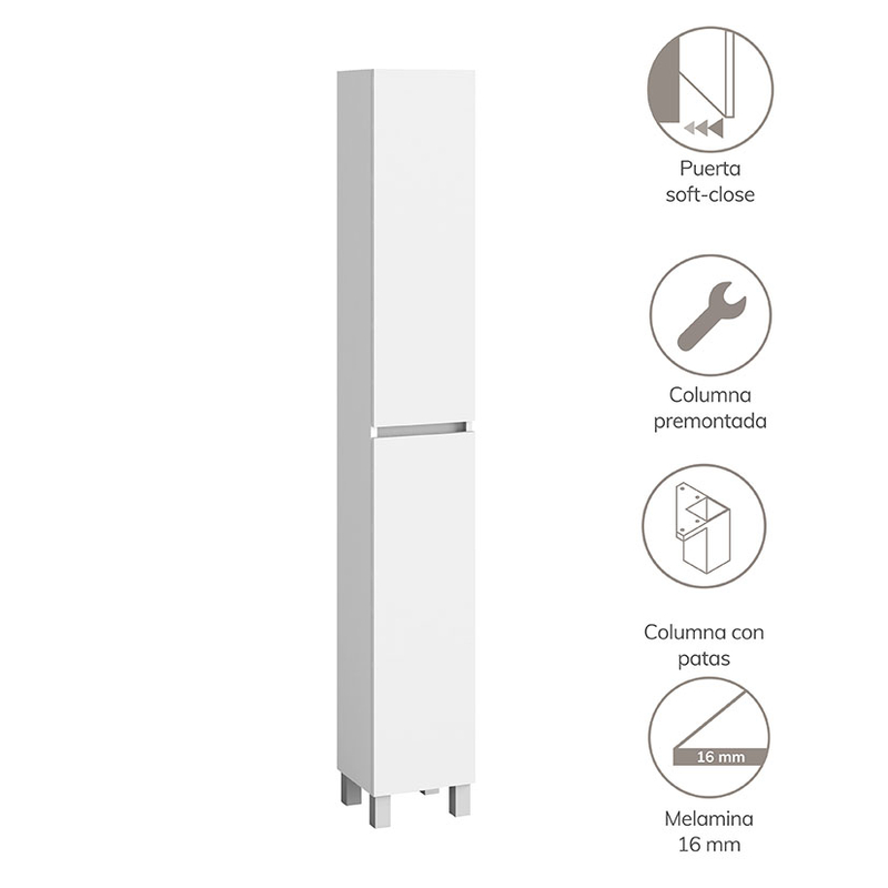 Columna auxiliar para cuarto de baño u otras estancias. Dispone de apertura Soft-close, sin tiradores y cierre amortiguado. Está fabricado en melamina de 16 mm y se sirve montado de fábrica para una fácil instalación. Fabricado en España. Disponemos de más elementos combinables.