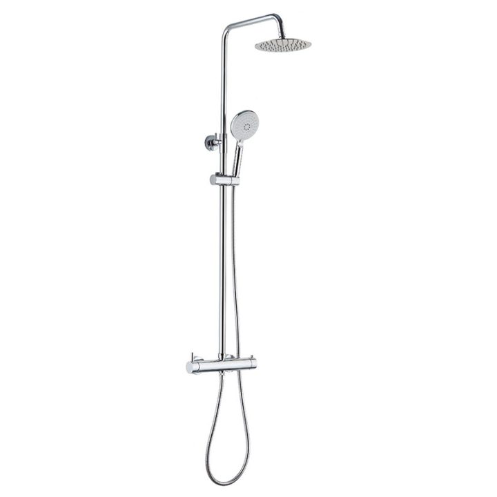 Esta barra tiene los acabados en latón cromado y el mango en ABS cromado con sistema autolimpiable. Con conexión directa de bañera o ducha. Cuenta con cartucho ø 35 salida libre, posición invertida. Rociador redondo en acero inoxidable con un diámetro de 20 cm. La presión de caudal 3 bars. Puedes completar la información de este producto consultando la ficha técnica que tenemos colgada en nuestra web del fabricante.