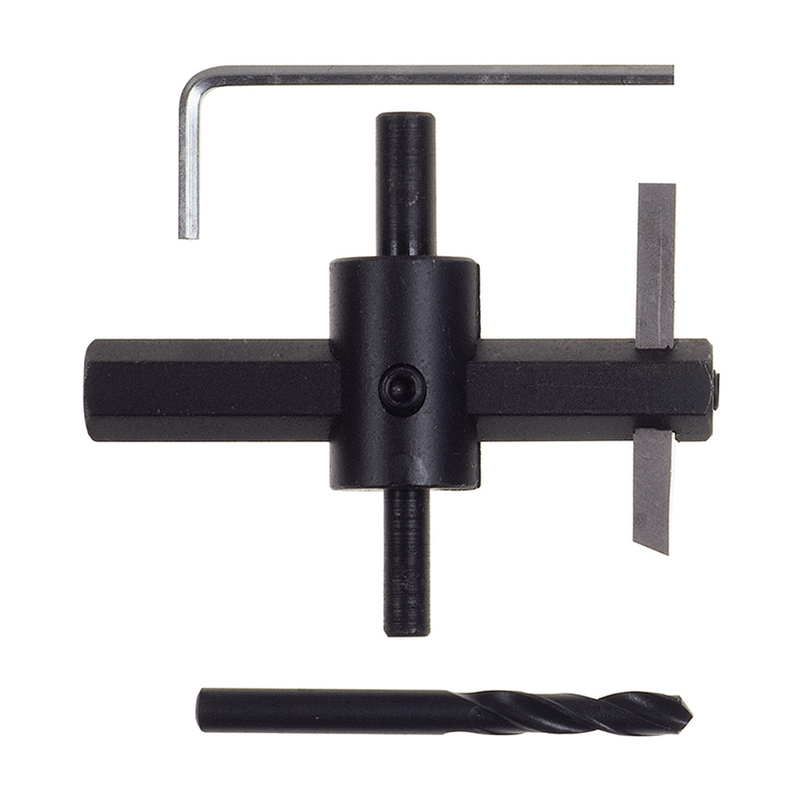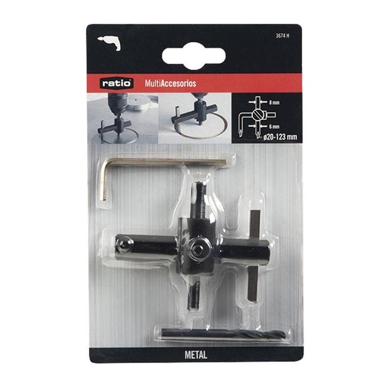 Especialmente diseñado para utilizar con taladros y de gran utilidad para el corte en diferentes materiales como: el metal, plástico, entre otros. Incluye broca guía de 6 mm y llave allen. Viene presentado en un blíster.
