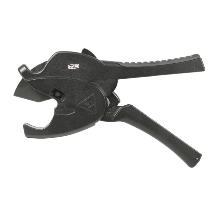 Cortatubos plástico/PVC RATIO 5639. Dispone de una potente cuchilla que te ayudará a cortar PVC y plástico en apenas segundos. Este potente cortatubos para plástico y PVC, tiene unas características especiales que lo convierten en fundamental para los profesionales que quieran apostar por un producto de alta calidad y usabilidad. El cuerpo está fabricado con una aleación de magnesio, de gran ligereza y resistencia. El diseño del mango con empuñadura de goma, te ayudará a ganar en efectividad y en resistencia. La cuchilla inoxidable Soligen/Germany cuenta con recubrimiento antiadherente de PTFE y se puede cambiar de forma manual, instantánea, sin necesidad de herramientas.