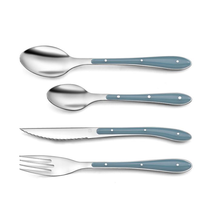 Esta cubertería de la serie Bistro está fabricada en acero inoxidable en una sola pieza con un espesor de 1,5 mm y el mango remachado en polipropileno de color rojo. Indicada para 6 servicios y está compuesta por: 6 cucharas, 6 tenedores, 6 cuchillos y 6 cucharillas de postre o café. Apta para el lavavajillas. En nuestra web disponemos de más colores.