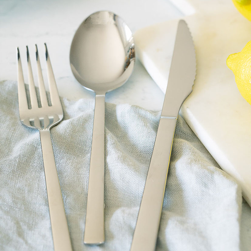 Viste tu mesa con estilo y saborea tus platos con los cubiertos Amalfi, que combinan elegancia y practicidad.