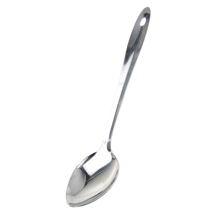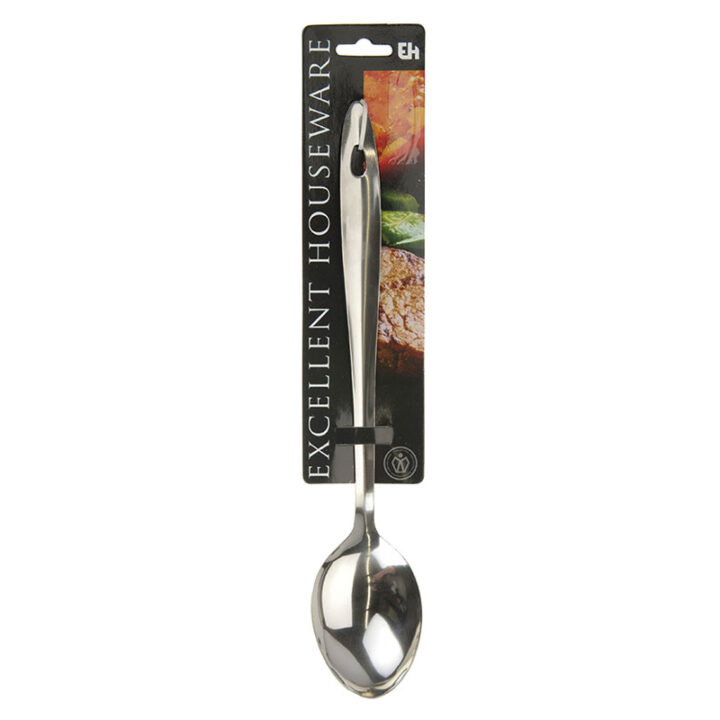 La cuchara fabricada en acero inoxidable y en la parte superior tiene un agujero para que la puedas colgar en tu cocina. Es apta para el lavavajillas. Viene presentada en blíster.