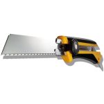 · Esta cuchilla es muy práctica para cortar materiales resbaladizos como una tubería recubierta con vinilo, lana de vidrio, cuerda, cartón y película de estiramiento que son difíciles de cortar con las cuchillas tradicionales.