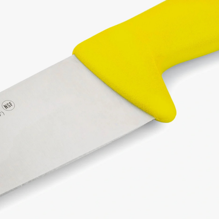 Cuchillo de carnicero con mango amarillo ergonómico y certificado NSF, diseñado para un corte preciso y seguro de carne. Incorpora hoja de acero inoxidable Nitrum® de alta durabilidad y resistencia.