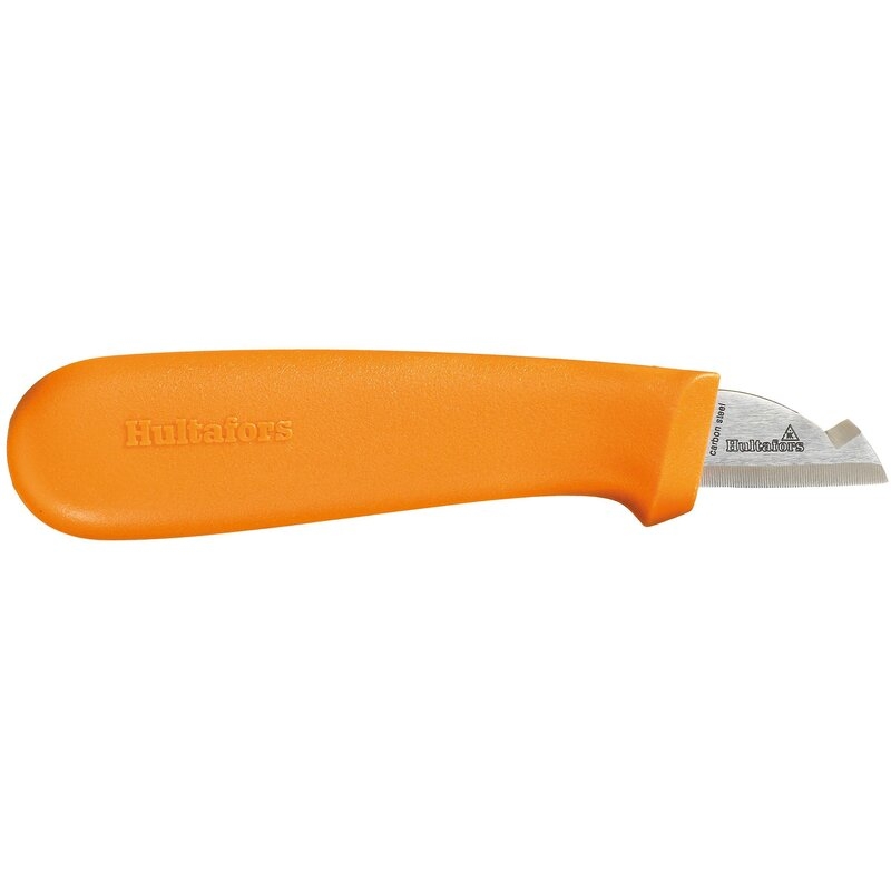 · El afilado de los filos de corte y el diseño del magno han sido optimizados para pelar cables. · Cuchilla fabricada con acero de cuchillo Japonés, acero al carbono de 1,5mm endurecido a 58-60 HRC. · Mango y funda fabricados con plástico PP extra resistente.