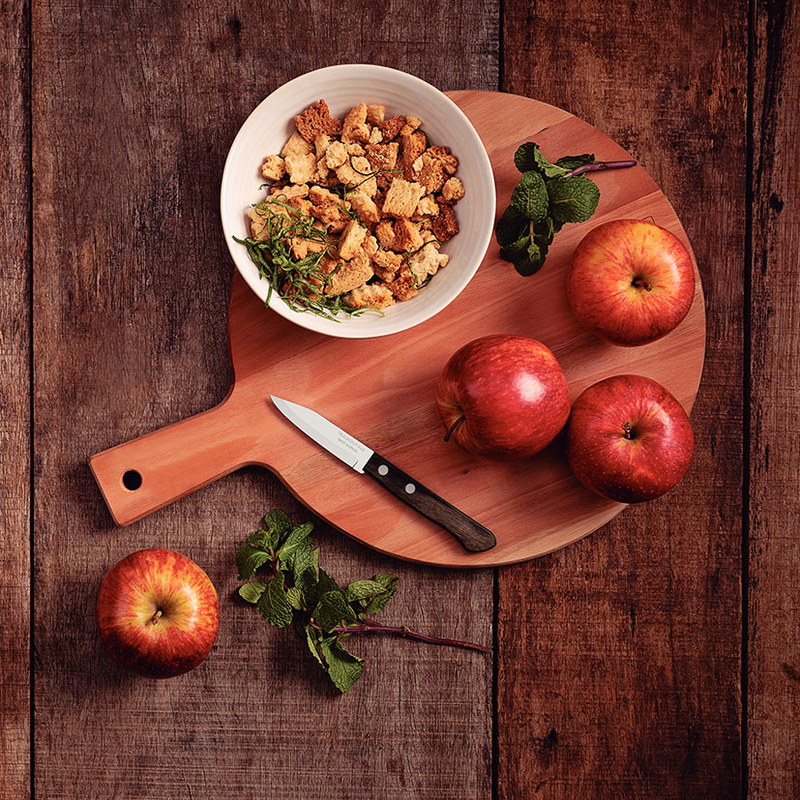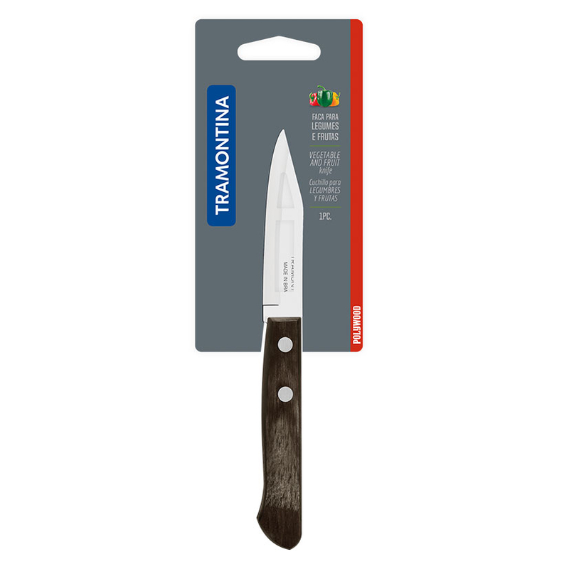 Este cuchillo TRAMONTINA está fabricado en acero inoxidable. El mango está fabricado en madera Polywood en color castaño con remaches en acero inoxidable. Se presenta en una placa. En nuestra web disponemos de más modelos de cuchillos de la serie Polywood.