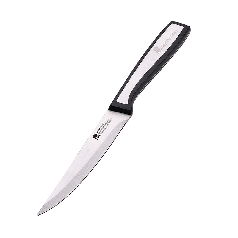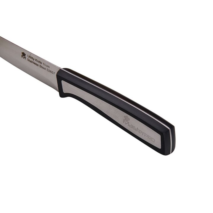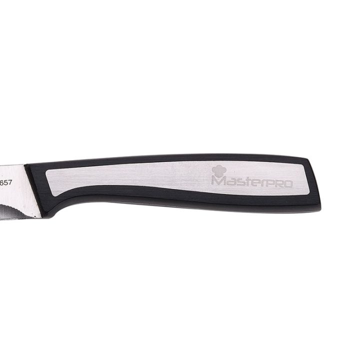 La gama de cuchillos de la serie Sharp de la marca MASTERPRO están fabricados en acero inoxidable, acabado en mate, con mango estampado y son profesionales. Se caracterizan por su espiga completa que aporta una mayor durabilidad. Las hojas insertas en el mango, tienen el mismo espesor a lo largo de toda la superficie. Los mangos presentan un diseño ergonómico y de tacto suave que se adaptan perfectamente a tu mano.