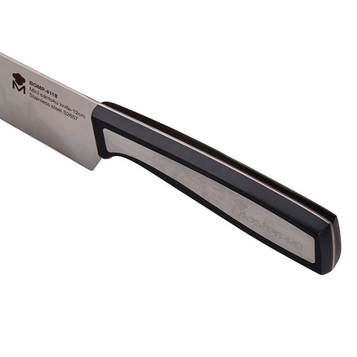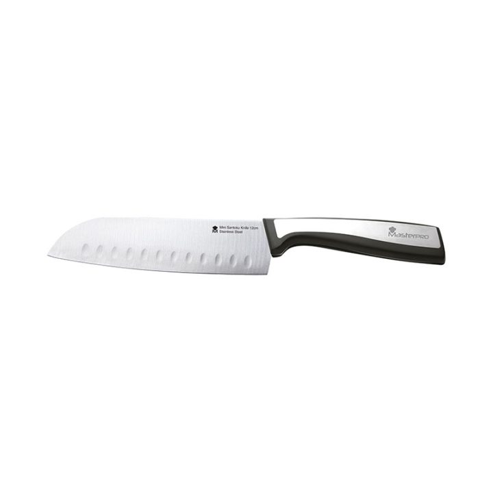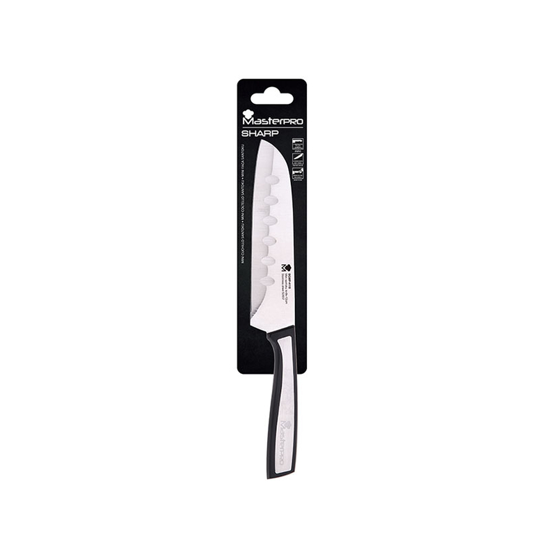 La gama de cuchillos de la serie Sharp de la marca MASTERPRO están fabricados en acero inoxidable, acabado en mate, con mango estampado y son profesionales. Se caracterizan por su espiga completa que aporta una mayor durabilidad. Las hojas insertas en el mango, tienen el mismo espesor a lo largo de toda la superficie. Los mangos presentn un diseño ergonómico y de tacto suave que se adaptan perfectamente a tu mano.