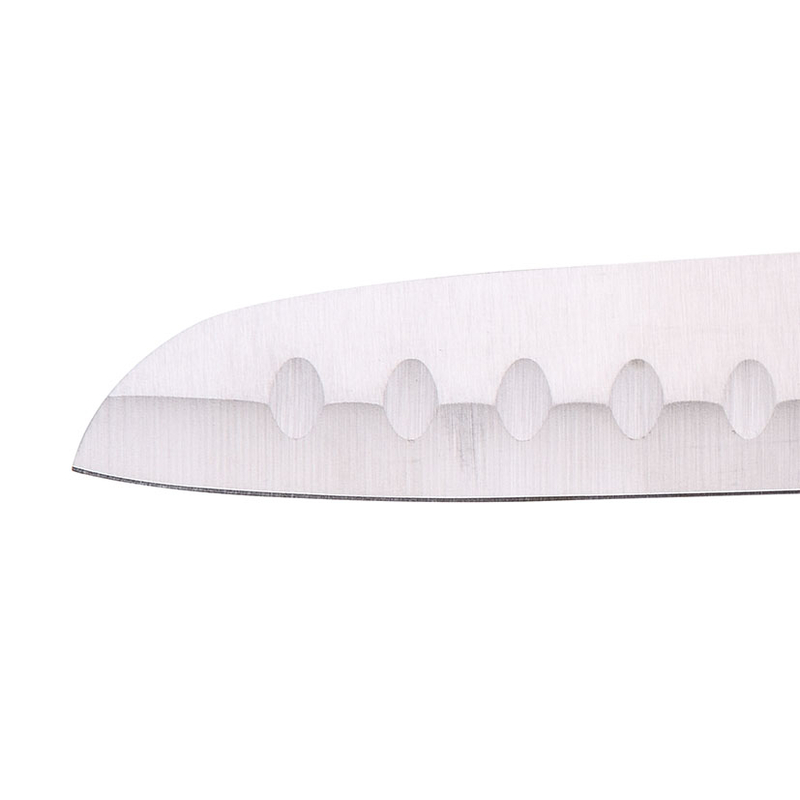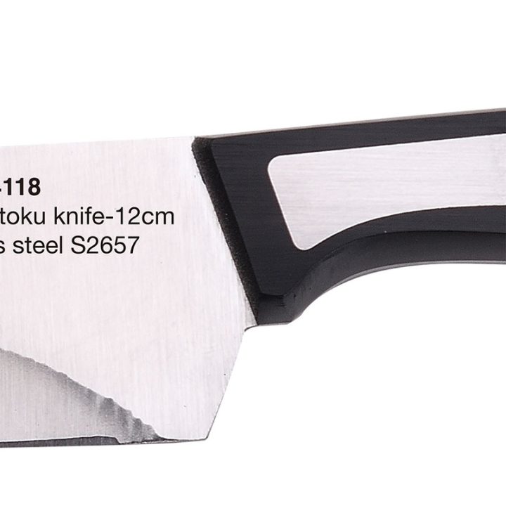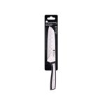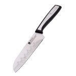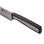 Este cuchillo Santoku mini es físicamente más ancho que el típico cuchillo de cocina, lo que permite usarlo a modo de paleta para recoger los alimentos una vez troceados y facilita el corte a modo de «cuna». Destaca por una elevada durabilidad, calidad y resistencia. Además, mantiene su filo incluso después de cortar alimentos de consistencia dura. Es de fácil limpieza y su ligereza y su cuidado balance permiten una manipulación segura evitando los accidentes. En nuestra web disponemos de más modelos de cuchillos de esta misma gama.