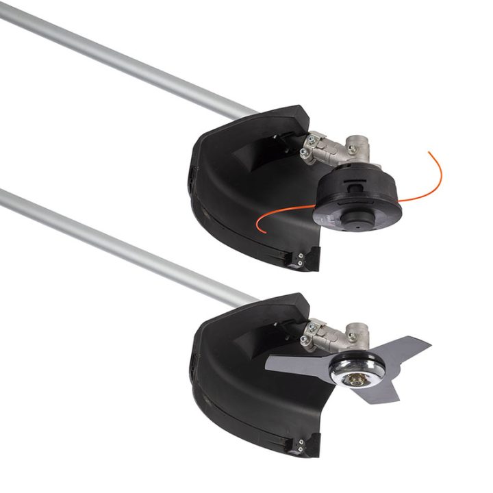 Cuenta con un cabezal de 2 hilos, ideal para trabajos más ligeros y de precisión, y una cuchilla de tres puntas para cortar vegetación más densa.
