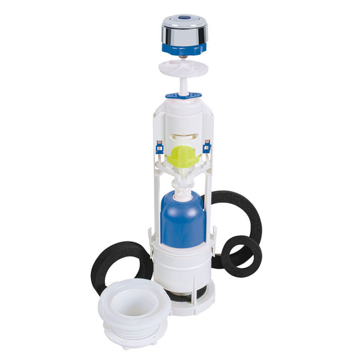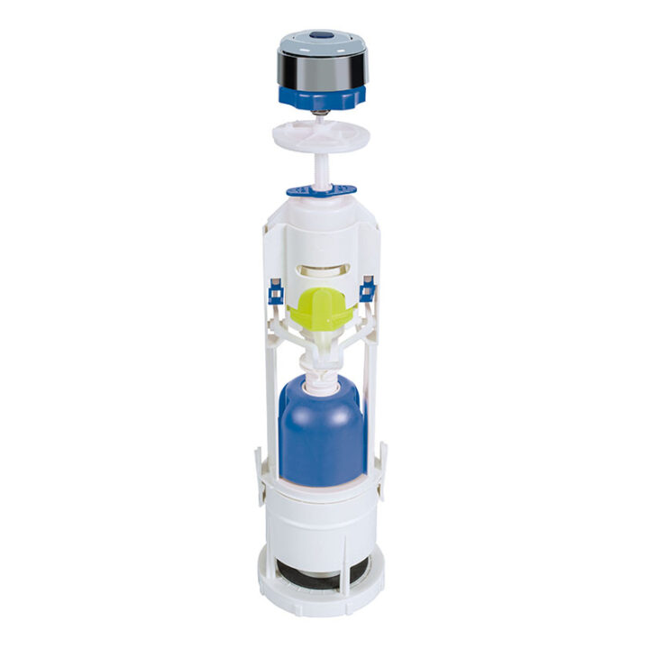 Esta descarga de cisterna para WC fabricada en polímeros de primera calidad tiene un mecanismo de doble regulable (9L para la total y 3-4,5l la parcial) para cisternas WC equipadas con pulsador superior de doble boltón. Con regulacion sencilla gracias al bloqueo automático. Se acopla prácticamente a todas las cisternas. Con juntas de caucho de EPDM negro (esponja). Además, es adaptable a base ROCA. Se presenta en una caja.
