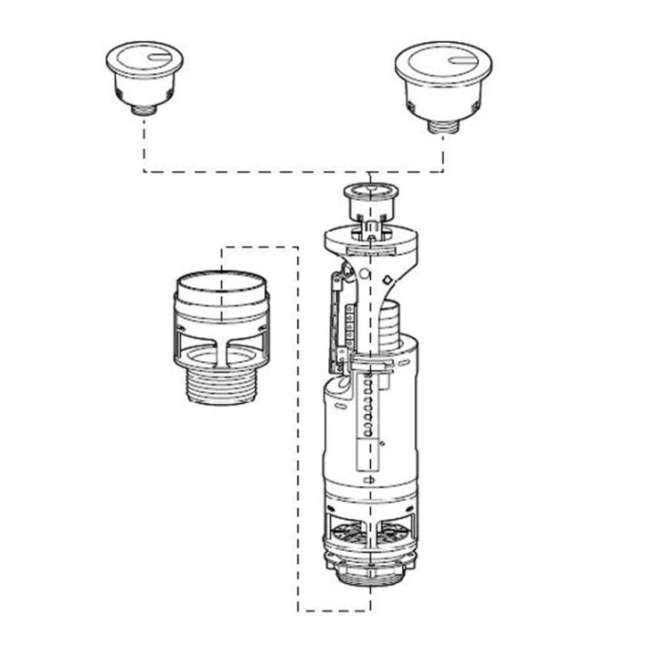 La descarga de cisterna tiene doble pulsador ø 40mm y ø 50mm. Incorpora un mecanismo universal de transmisión directa de doble descarga 6/3 o 4 5/3 litros. Ajuste de altura. Viene presentado en una caja.