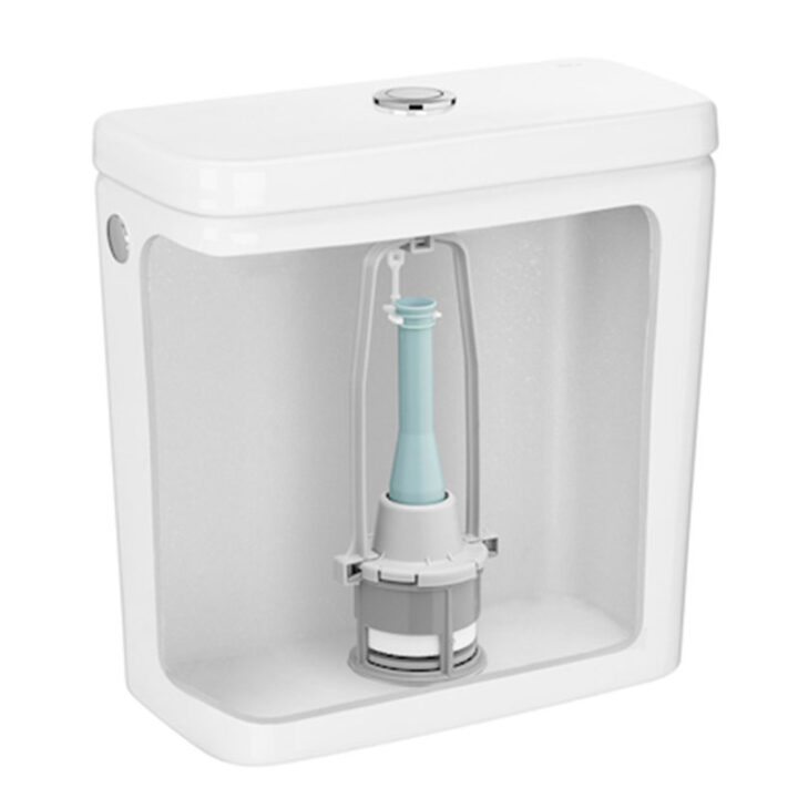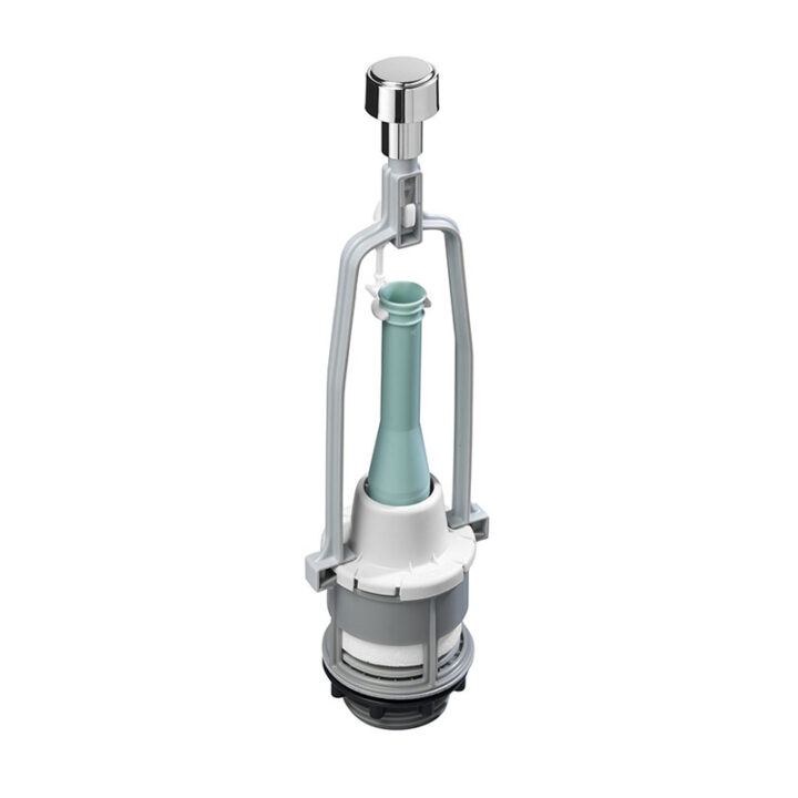 La descarga de cisterna incluye 4 pulsadores (cortos y largos ø 27 mm y ø 40 mm). Incorpora un mecanismo universal de transmisión directa de descarga simple interrumpible 6L. Viene presentado en una caja.