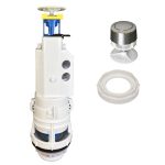 La descarga de cisterna tiene un simple pulsador con transmisión directa y sistema automático de regulación. Incorpora un mecanismo universal con doble pulsador y adaptador para bases roscadas. Cumple con la norma ISO 9001:2008 y certificado número SGI3200181. Se presenta en una caja.