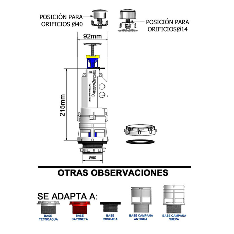 Está indicada para cisternas de tanque bajo, se adapta a bases TECNOAGUA, bases bayoneta, bases roscadas, campanas de giro y campanas de click tanto nuevas como antiguas.