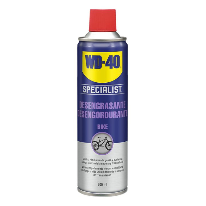 El desengrasante WD-40 Bike es perfecto para desengrasar rápidamente limpiando la cadena, desviadoras y engranaje de tu bicicleta y así alargando su vida. Lo puedes usar junto con el resto de productos de la gama Bike que tenemos en nuestra web.