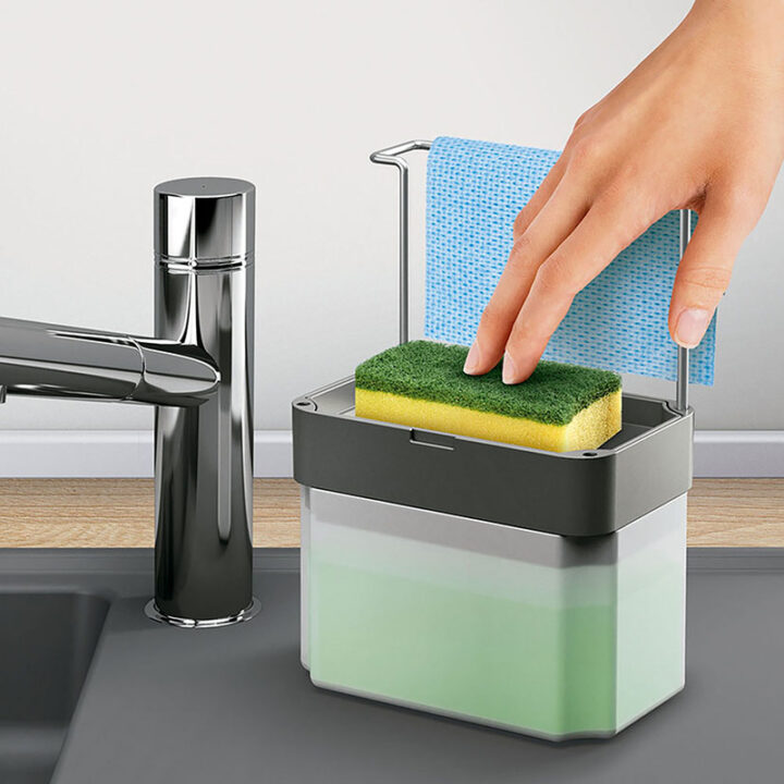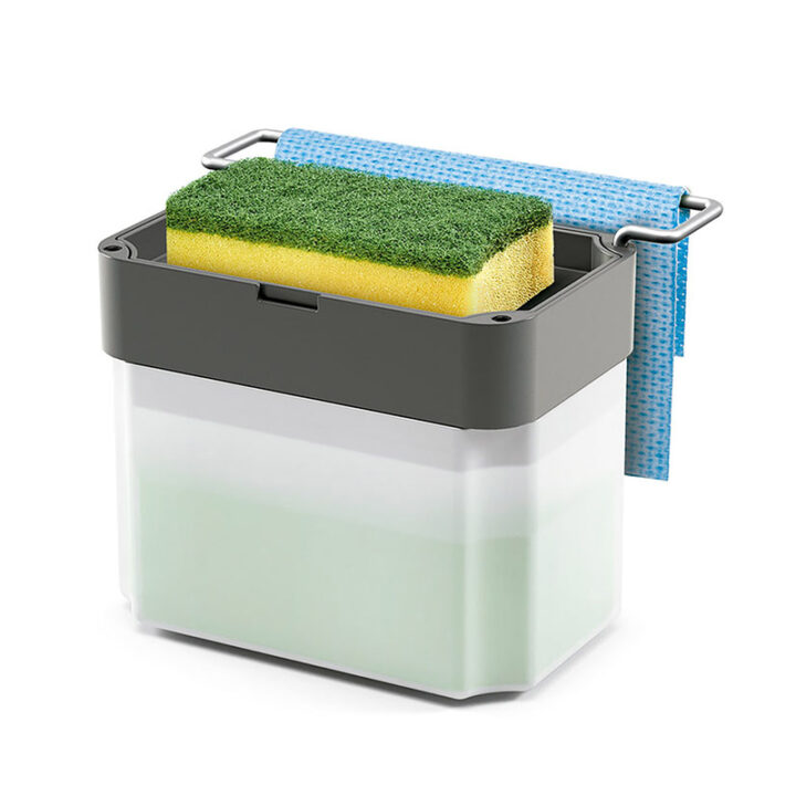 Mejora la funcionalidad y el orden de tu cocina o baño con el innovador Dosificador de Jabón METALTEX Sponge-Tex. Diseñado para ofrecer comodidad y eficiencia este dosificador se convierte en un accesorio esencial para tu hogar. El cuerpo está fábricado en plástico ABS, resistente y duradero, garantiza una larga vida útil del producto. Incorpora un colgador de acero inoxidable para que puedas colgar un paño de cocina. Dispone de recipiente translúcido para que puedas ver en todo momento el nivel de jabón, pies antideslizantes para una mayor estabilidad. Con capacidad de 750 ml, permite impregnar la esponja con jabón líquido con solo una mano, simplemente presionando sobre ella, facilitando las tareas de limpieza.
