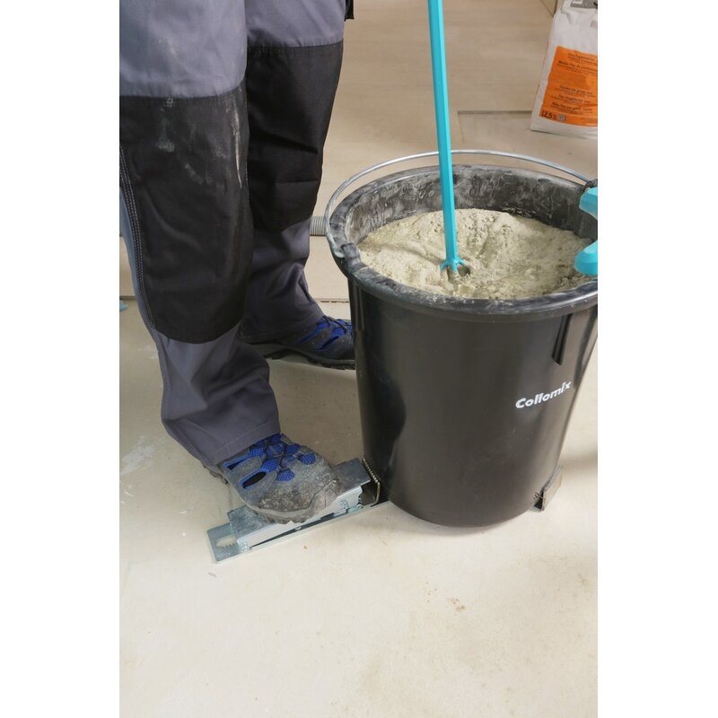 Dependiendo de la composición del material, existe el riesgo de que el cubo de mezcla gire demasiado. Esto no solo es peligroso sino también molesto ya que el material puede ser arrojado fuera del cubo y ensuciar todo el lugar de trabajo. mix.GRIP proporciona una solución porque siempre tiene el cubo firmemente sujeto y bajo control gracias a su pedal ajustable. Se puede utilizar con cubos de varios diámetros.
