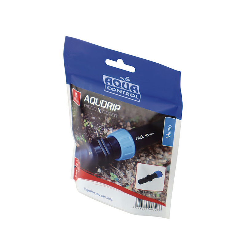 Enlace de transmisión para tubo y cinta plana ø 16mm, permite unir una tubería «estandar» con una cinta plana con goteros.. Este enlace facilita la distribución de agua de forma uniforme, asegurando un riego óptimo en jardines, huertos o áreas agrícolas. Con una presión máxima de trabajo de 1,2 Bar (recomendable instalar un reductor de presión)