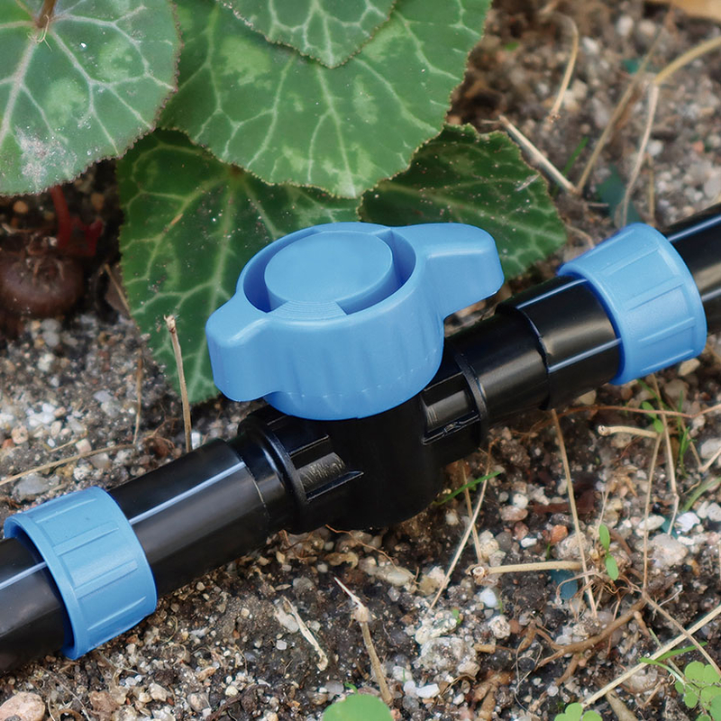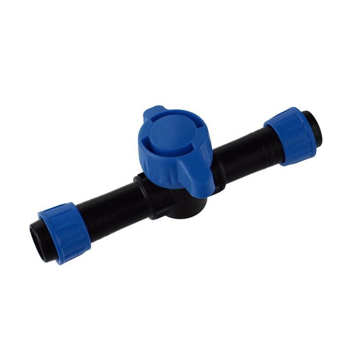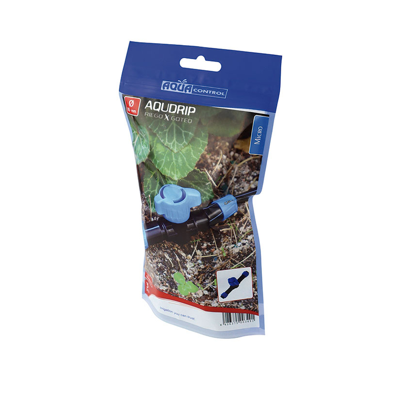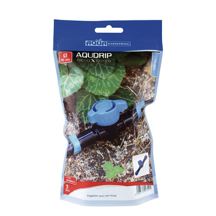 Válvula de corte para cinta plana ø 16mm, permite incorporar una válvula de corte entre dos tramos de cinta plana. Este enlace facilita la distribución de agua de forma uniforme, asegurando un riego óptimo en jardines, huertos o áreas agrícolas. Con una presión máxima de trabajo de 1,2 Bar (recomendable instalar un reductor de presión)