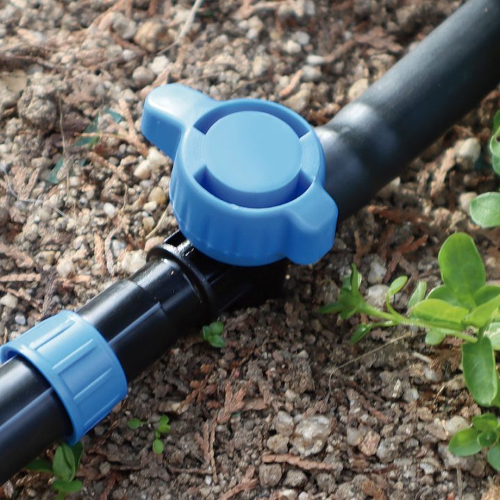 Válvula de corte tubo de ø 16 mm y para cinta plana ø 16 mm, Permite incorporar una válvula de corte entre un tramo de cinta plana con goteros y otro de tubería «estandar». Este enlace facilita la distribución de agua de forma uniforme, asegurando un riego óptimo en jardines, huertos o áreas agrícolas. Con una presión máxima de trabajo de 1,2 Bar (recomendable instalar un reductor de presión)