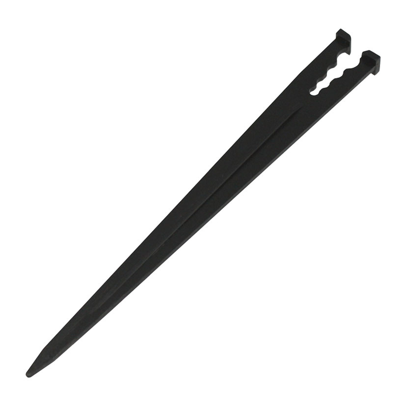 3C. … saque los ramales de microtubo de 4 mm. mediante las UNIONES. Coloque el GOTERO en el extremo final del microtubo. Las PIQUETAS nos van a permitir fijar y elevar el gotero sobre la tierra.