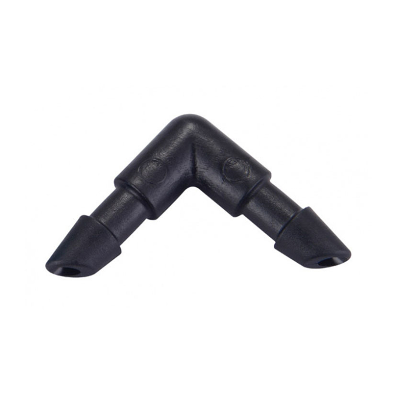 Set de 10 unidades de codos para sistema de riego por goteo, que se basa en el aporte continuo de agua sobre la superficie del suelo (riego superficial), de manera que solo se moja una parte del suelo, la más próxima a la planta.