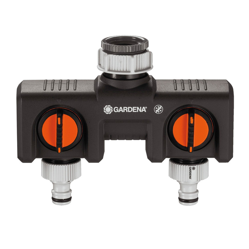 Es un distribuidor de dos vías para conectar a la vez dos accesorios a un grifo. Las salidas del conector son regulables.