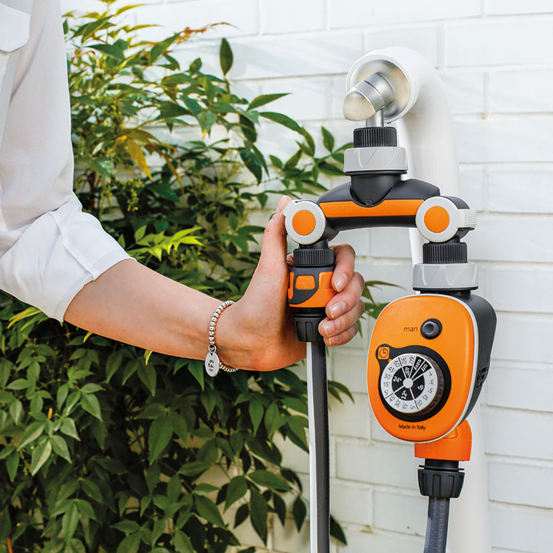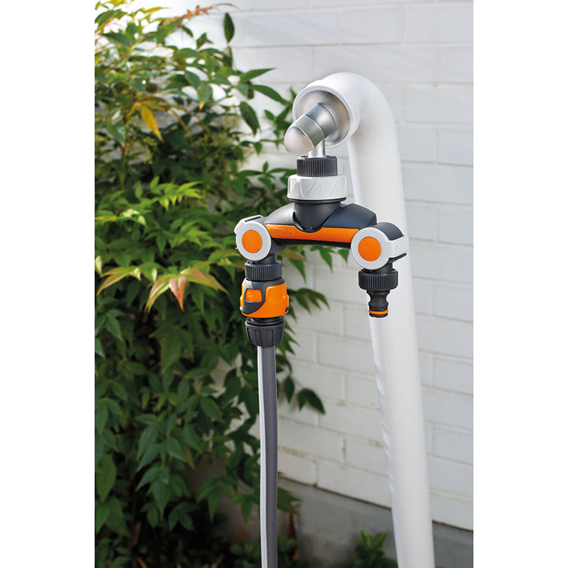 El Distribuidor de grifo 2 vías LISTA Serie WaterCycle cuenta con regulación individual, cada salida dispone de un modulador independiente para ajustar el caudal de agua o cerrarlo completamente. Diseñado con rosca de 3/4″, compatible con la mayoría de grifos estándar. De gran versatilidad para conectar mangueras, sistema de riego y otros accesorios al mismo tiempo.