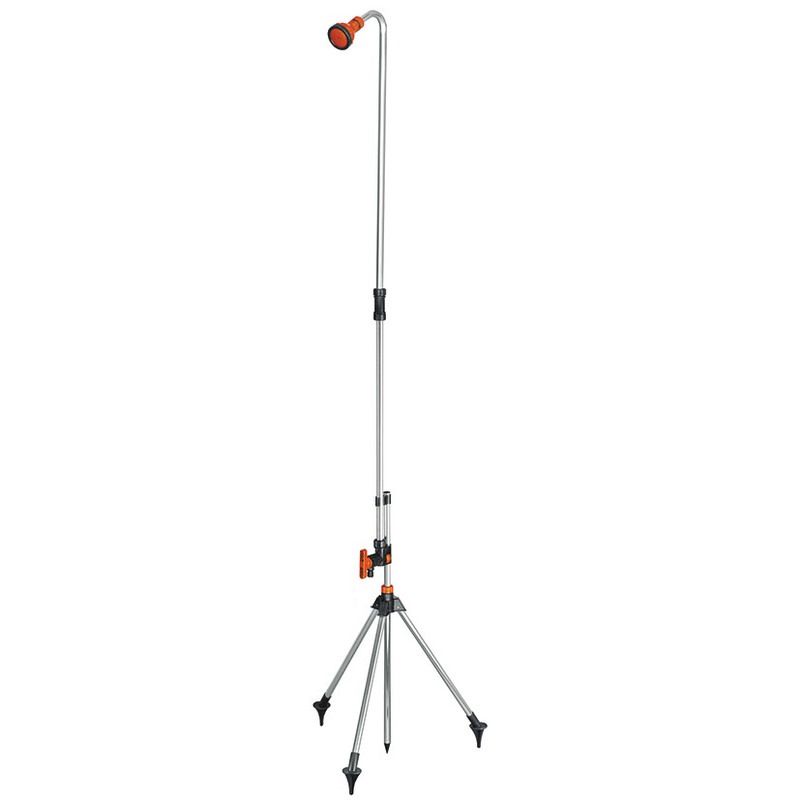 Su estructura tubular está fabricada en aluminio de alta calidad resistente a la corrosión, es ligera y manejable. La altura de la ducha se ajusta hasta 2 metros de altura mediante una palanca. Dispone ve válvula reguladora del caudal del agua. Gracias al trípode, hace que esta ducha sea adecuada para instalarla en cualquier superficie dura.
