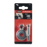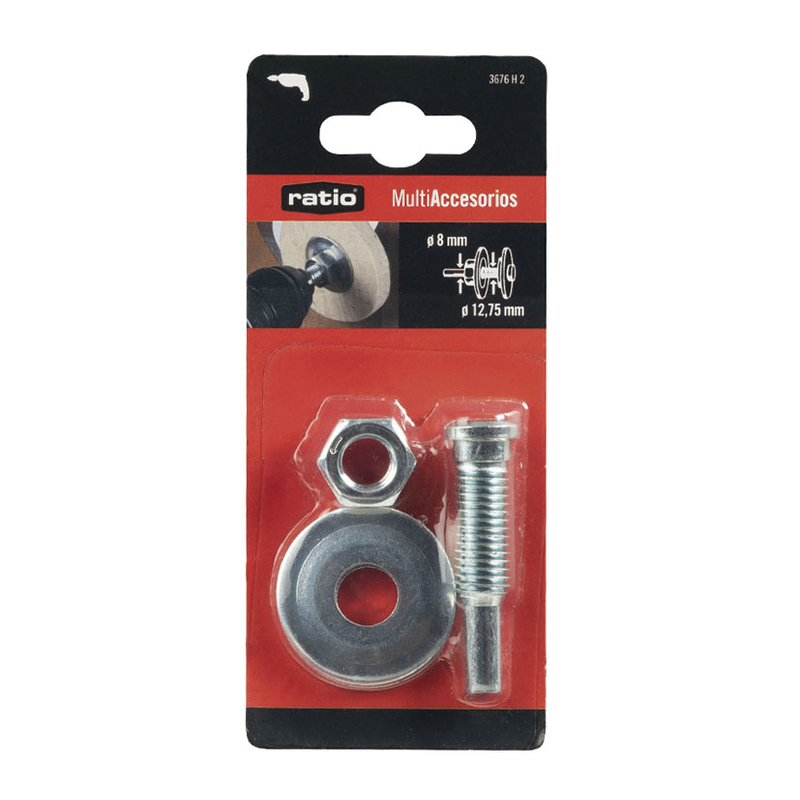 Fabricado en metal cincado, tiene un diámetro de rosca interna de 12,75 mm y vástago de 8mm. Indicado para taladros de 5.000 rpm. Viene presentado en un blíster