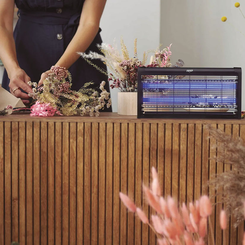 El eliminador de insectos JATA está diseñado para zonas expuestas al público como restaurantes, tiendas, bares, entre otros. Es de uso interior y tiene un bajo consumo. Incorpora dos lámparas ultravioletas para atraer a los mosquitos, un interruptor de encendido, una cadena para que lo puedas colgar fácilmente y una bandeja extraíble para una mejor limpieza.
