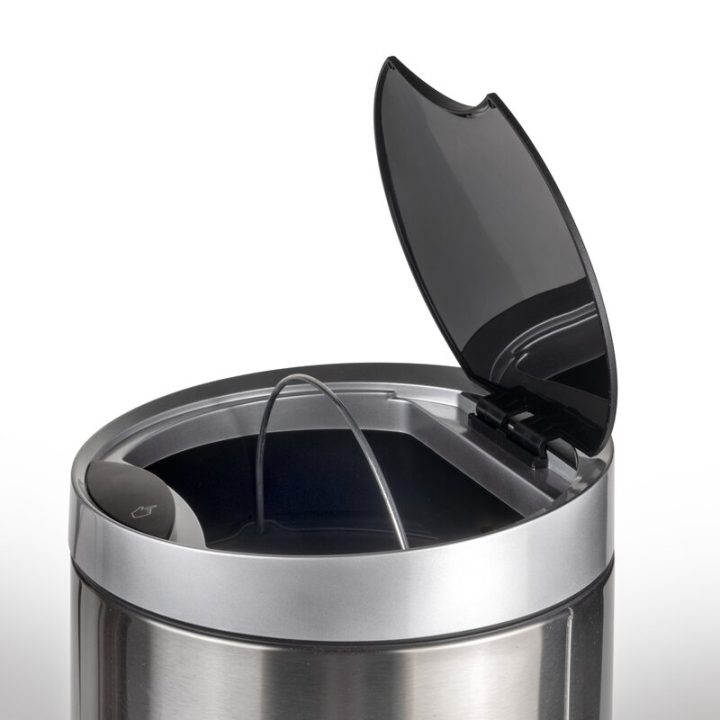 Contenedor de basura circular Recycle con accionamiento de la tapa mediante sensor de detector de movimiento situado en la tapa que facilita su uso cotidiano. El contenedor posee una capacidad de 20 litros y también incluye una cubeta la cual se extrae para facilitar la retirada de los residuos. Gracias a su diseño realizado en acero inoxidable se puede utilizar en cualquier zona del hogar, para la cocina, el baño y también para la oficina.