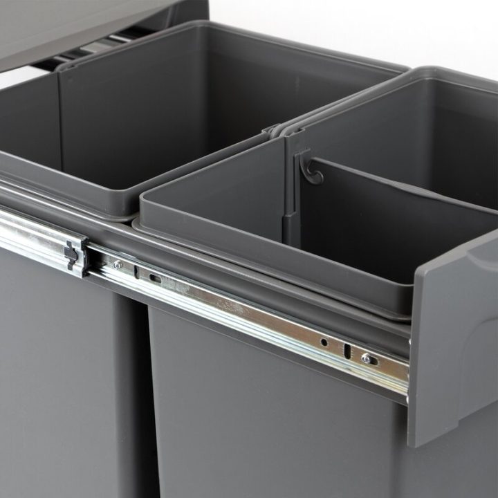 Contenedor de reciclaje extraíble ideal para separar y clasificar los residuos domésticos. Está diseñado para su integración en los muebles de la cocina ofreciendo un acceso más fácil a los cubos. Tiene una capacidad total de 40 litros y es válido para módulos con unas dimensiones mínimas útiles de 364 mm de ancho, 500mm de profundidad y 395 mm de altura.