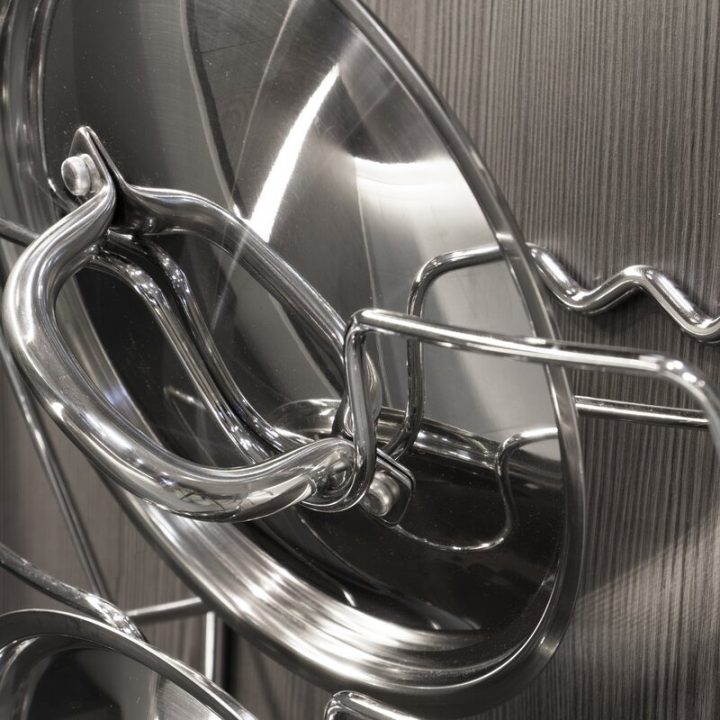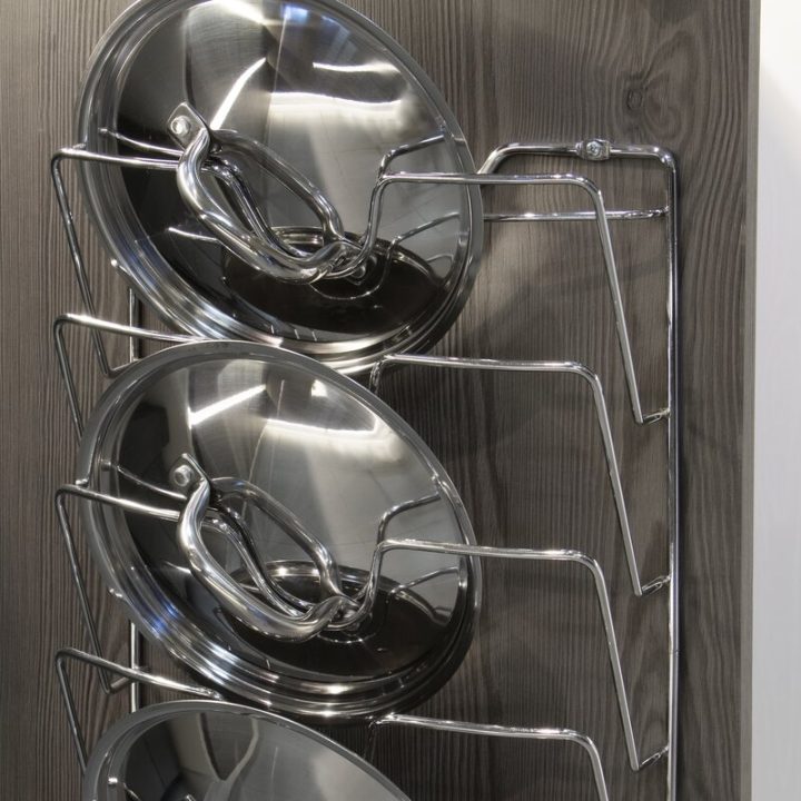Soporte oraganizador para colgar tapas de ollas y cacerolas.
