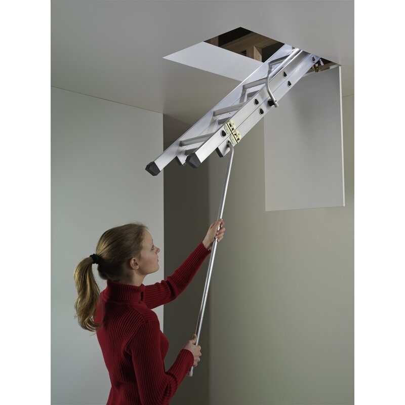 El deslizamiento de los tramos es mediante correderas antipinzamiento para un cómodo y suave despliegue. La escalera para ático Hailo HobbyStep viene completa con una pértiga de despliegue y un pasamanos para mayor seguridad al desplegar y subir. La instalación de la escalera es fácil y realizable por una persona no profesional.