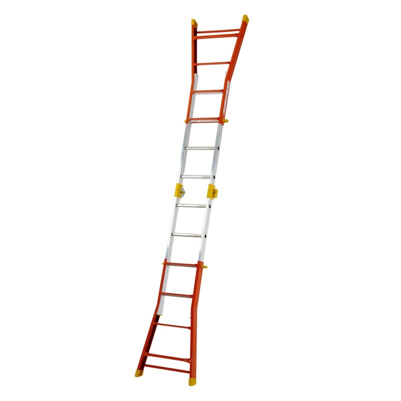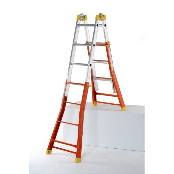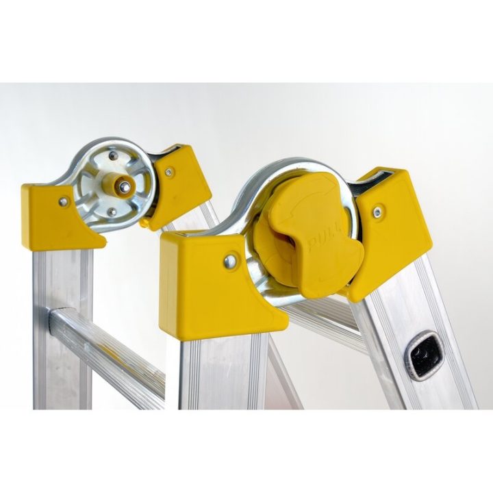 Escalera multifunción de acero-aluminio con articulación de bloqueo automático