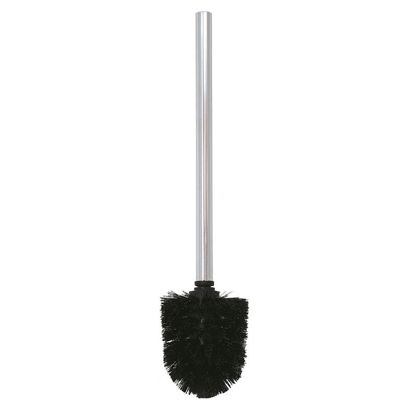 Esta escobilla tiene un cepillo color negro y un mango fabricado en acero inoxidable.