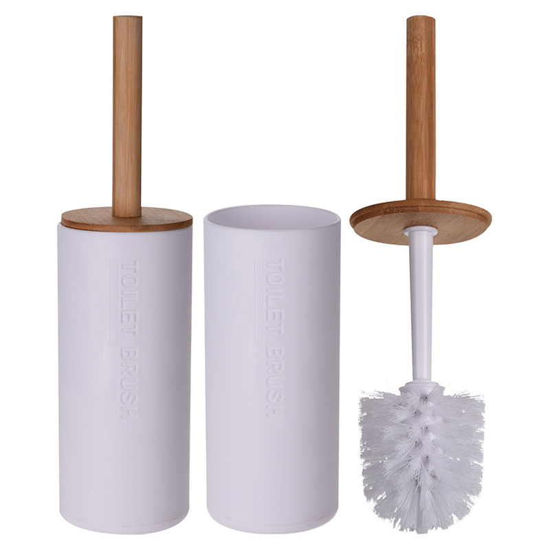 Este escobillero de WC está diseñado para combinar estilo y funcionalidad, elaborado con una mezcla de bambú y plástico blanco. Su diseño permite un uso cómodo y eficiente, convirtiéndolo en un accesorio esencial para cualquier cuarto de baño.
