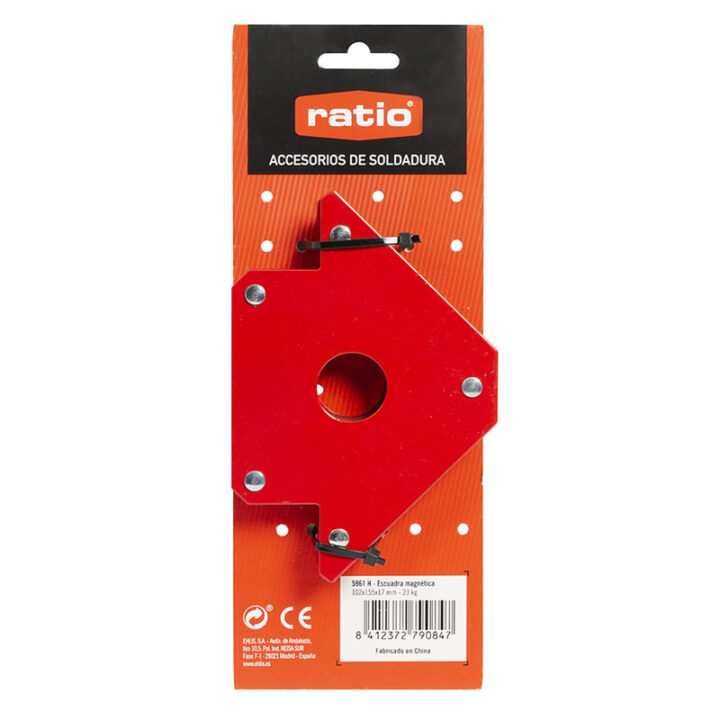 Esta escuadra magnética te permite reducir tiempo y esfuerzo para todos los procesos de soldadura excepto oxigas. Sus imanes mantienen el ángulo y ubicación antes de realizar un buen arco, tiene un ángulo de 45º-90º y una fuerza de sujeción de 23 kg. Sus medidas son 10,2×15,5xh.1,7 cm.
